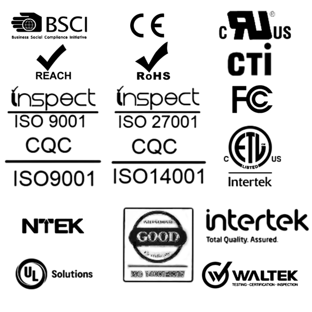 All products are rigorously tested and certified under UL, CE, RoHS, and FCC standards to ensure consistent safety, performance, and durability.